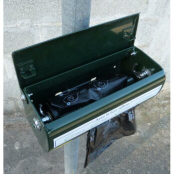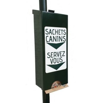Distributeurs de sacs à déjections : disponibles en versions murales ou sur poteau, compatibles avec des sacs en rouleau ou en liasse.