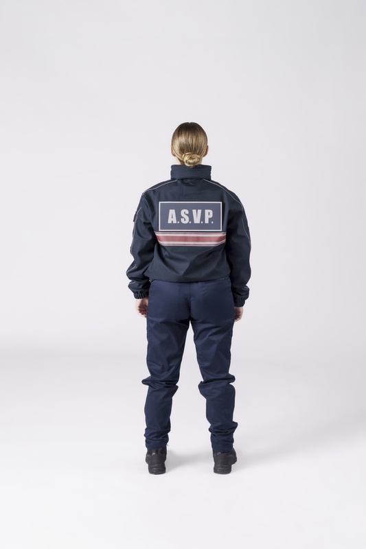 La finition a été particulièrement soignée avec un bas élastiqué et des biais rétro sur les manches, assurant un confort durable et une tenue ajustée. Le flap dos et devant « ASVP » garantit une identification claire et officielle de l’agent.