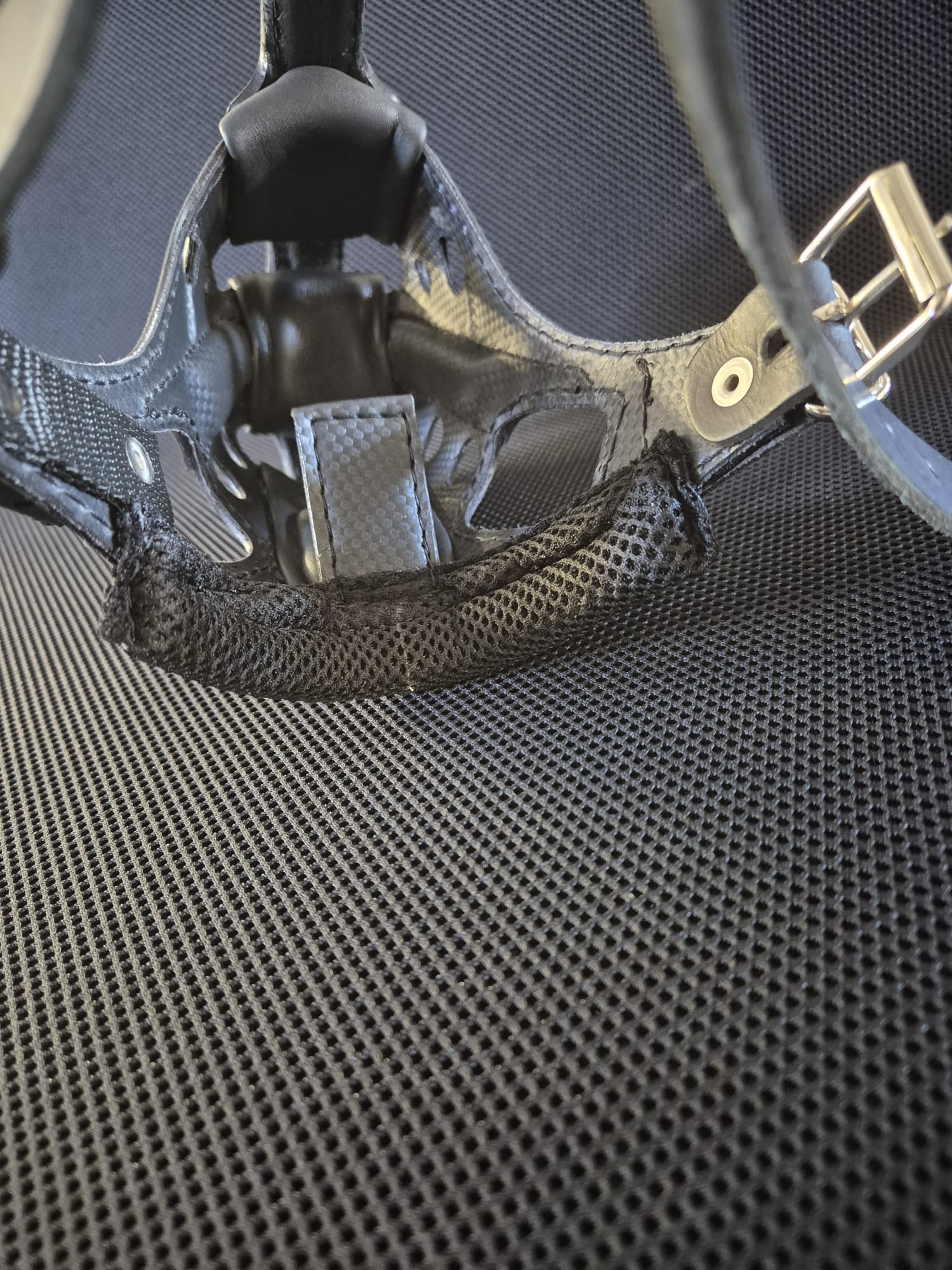 - Lanière frontale réglable avec système à vis pour un ajustement millimétré.