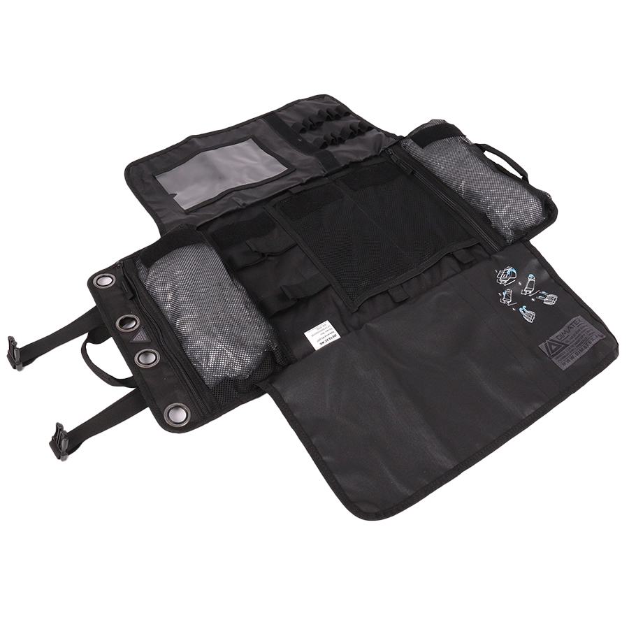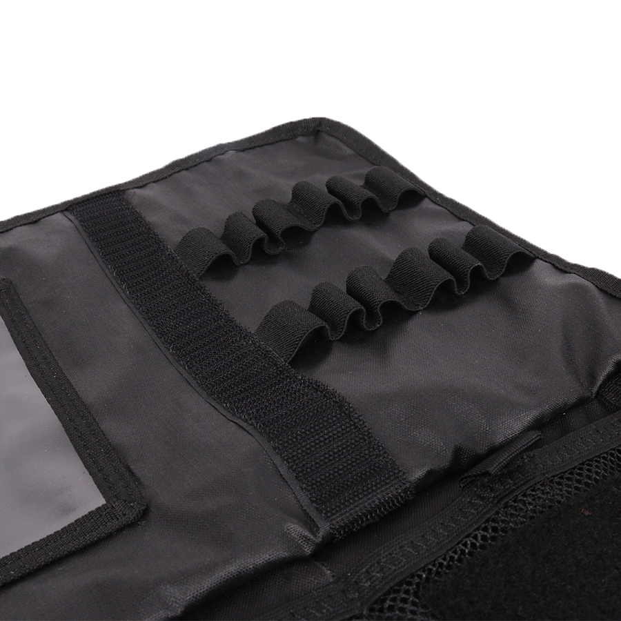 L’intérieur est particulièrement bien pensé. Il est structuré autour de nombreuses poches filet zippées (munies de fermetures YKK de haute qualité), de pontets élastiques modulables et d’une pochette transparente format A5, idéale pour y glisser une checklist, un inventaire ou des consignes d’intervention. Chaque outil ou accessoire peut être rangé de manière visible et sécurisé, évitant ainsi toute perte de temps ou de matériel sur le terrain.
