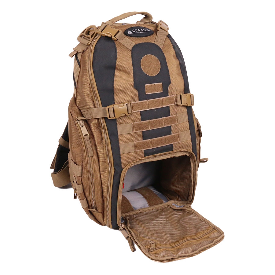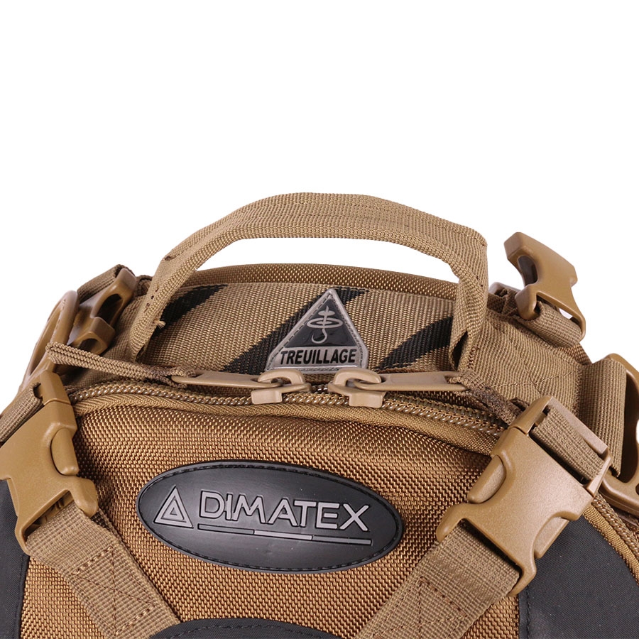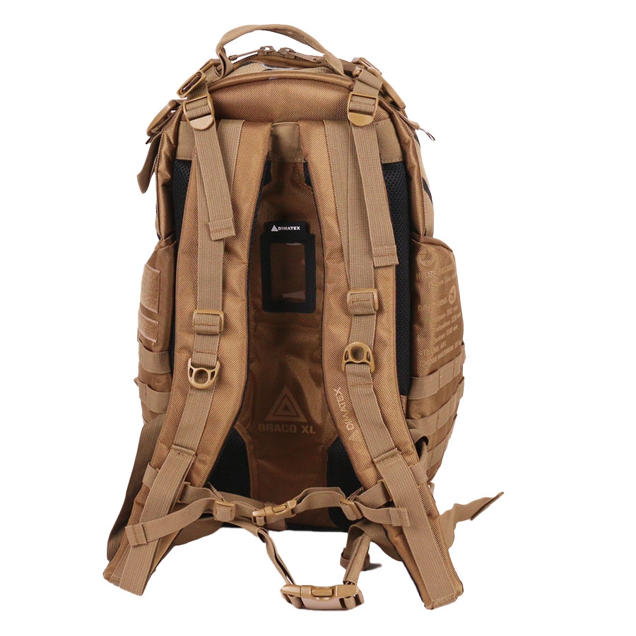 Sac à dos opérationnel tactique BRACO XL Coyote de Dimatex, idéal pour missions de terrain et interventions longues avec 42 L de capacité et matériaux résistants 1680D. Design modulable avec système MOLLE, poches multiples et confort de portage optimal.