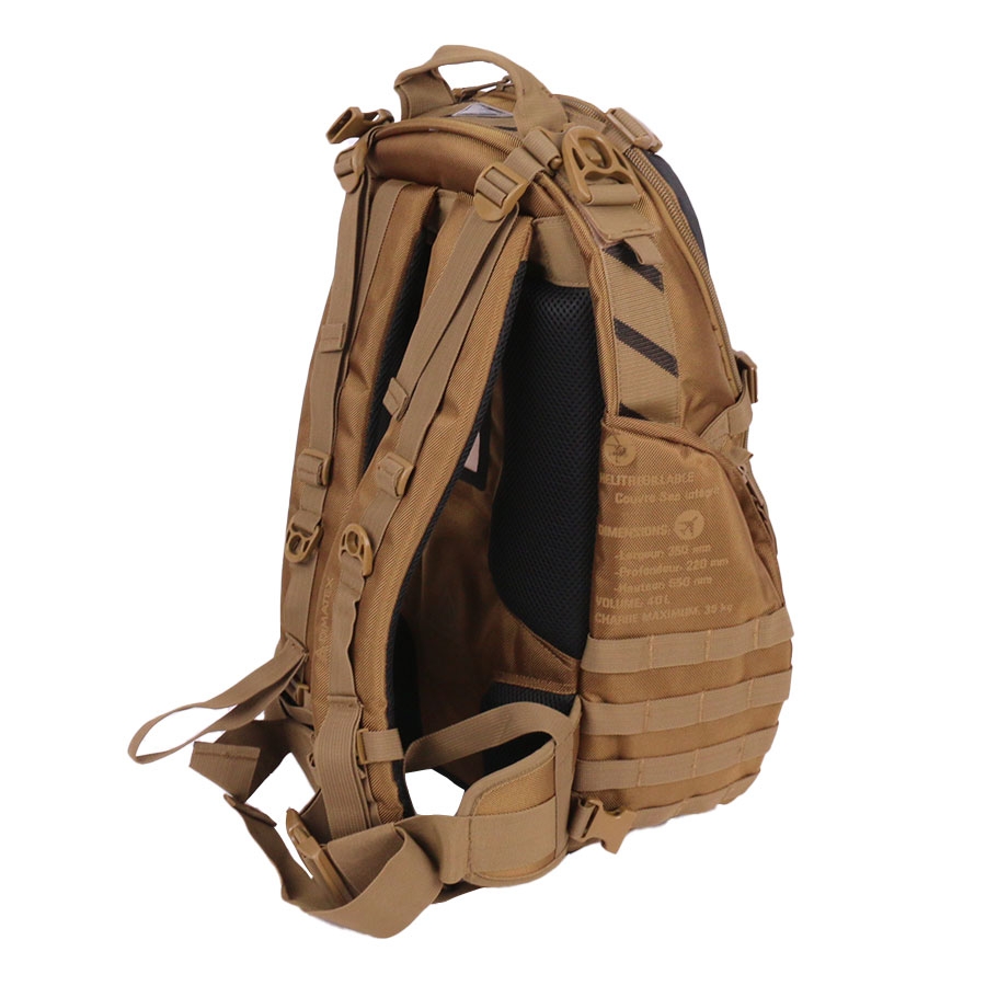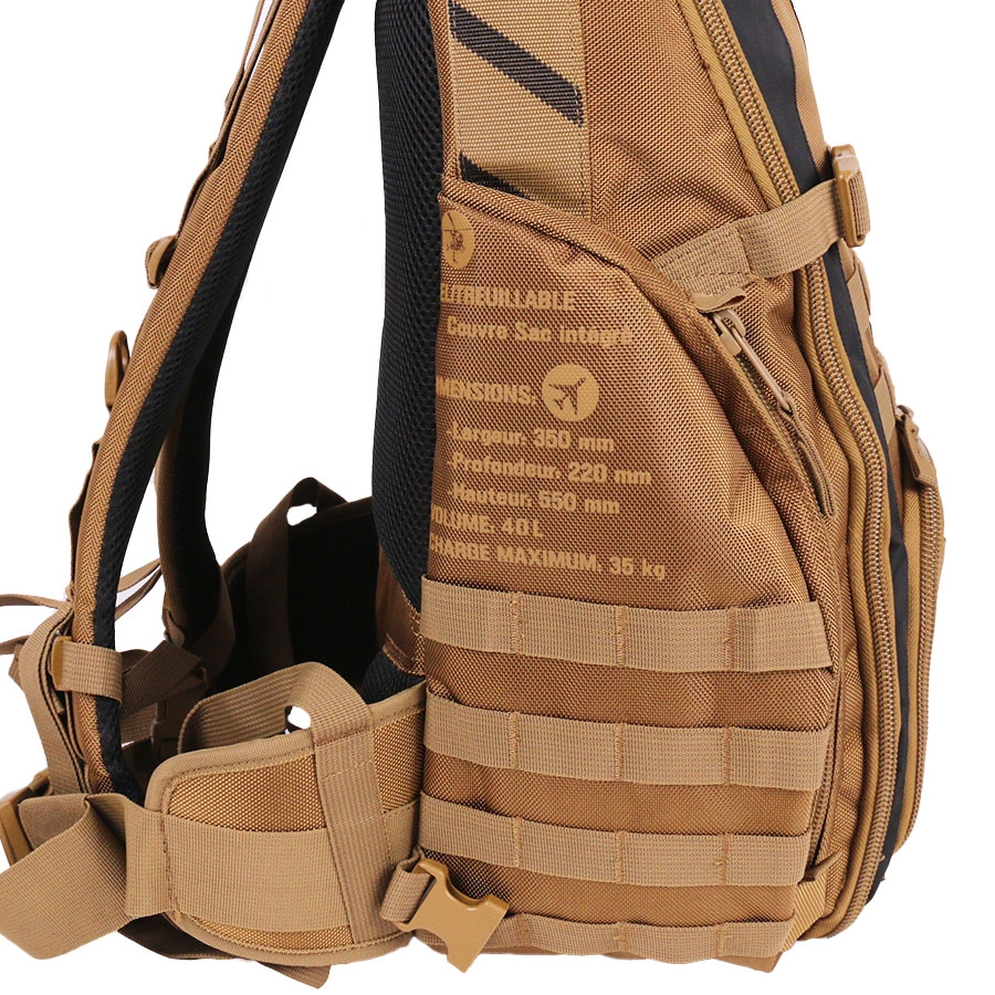 L’extérieur du sac n’est pas en reste. Le système MOLLE (Modular Lightweight Load-carrying Equipment) intégré sur les faces avant et latérales permet d’ajouter facilement des poches, des étuis ou des équipements supplémentaires. Ce système de fixation est particulièrement apprécié pour sa modularité et sa capacité d’adaptation aux besoins du terrain. Le sac est également hélistationnable, grâce à des renforts spécifiques et une construction adaptée au hélitreuillage, une caractéristique essentielle pour les interventions en milieu isolé ou d’urgence.